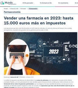 «Vender una farmacia en 2023: hasta 15.000 euros más en impuestos»