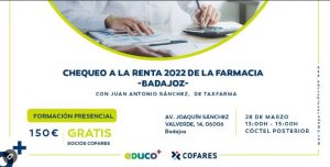 «Chequeo a la Renta 2022 de la Farmacia». Badajoz 28 marzo 2023. Educo+ Health Academy- Cofares
