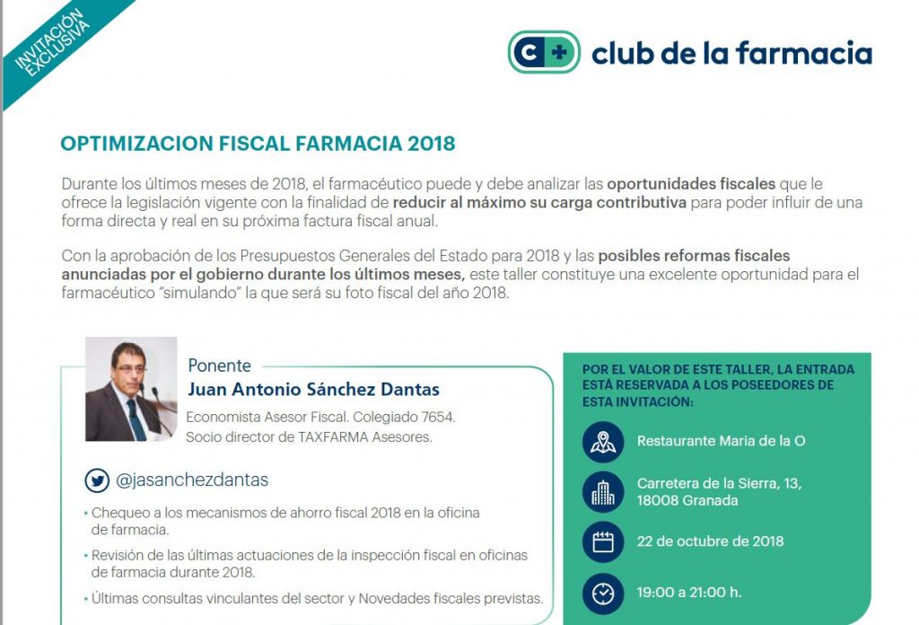 «Optimización Fiscal Farmacia 2.018». Granada. 22 octubre 2018.