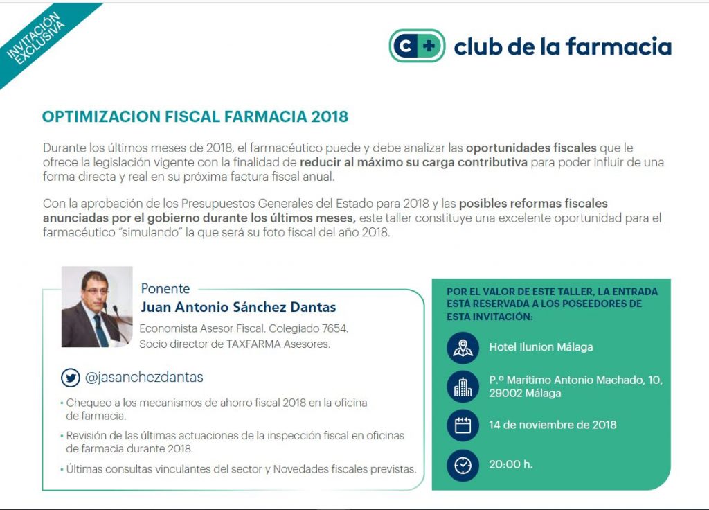 «Optimización Fiscal Farmacia 2.018». Málaga 14 noviembre 2.018