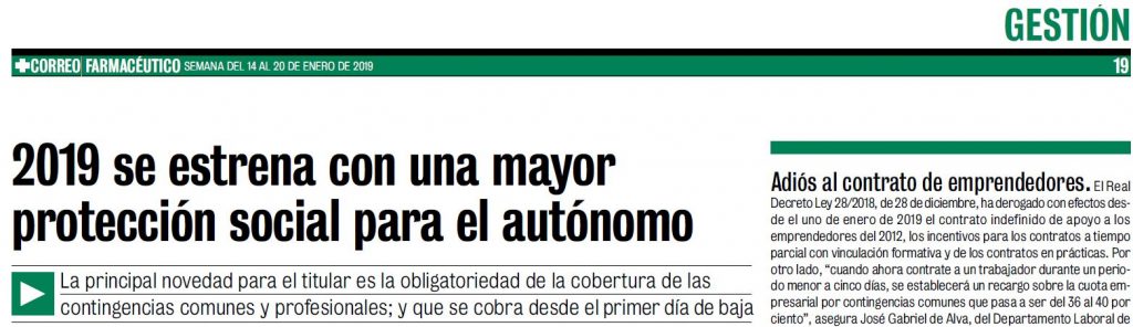 Raquel Reyes, responsable del área laboral de Taxfarma, opina sobre esta materia en Correo Farmacéutico (Semana del 10 al 16 de septiembre de 2.018). Ver articulo integro en Correo Farmaceutico