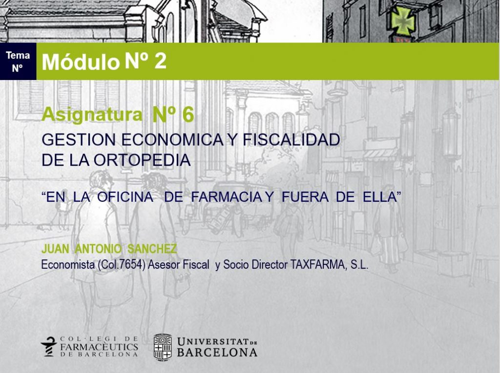 Taxfarma imparte «Gestión económica y fiscalidad de la Ortopedia en la Farmacia y fuera de ella». V Master de Ortopedia para Farmacéuticos. Facultad de Farmacia Universidad de Barcelona y Colegio de Farmacéuticos de Barcelona