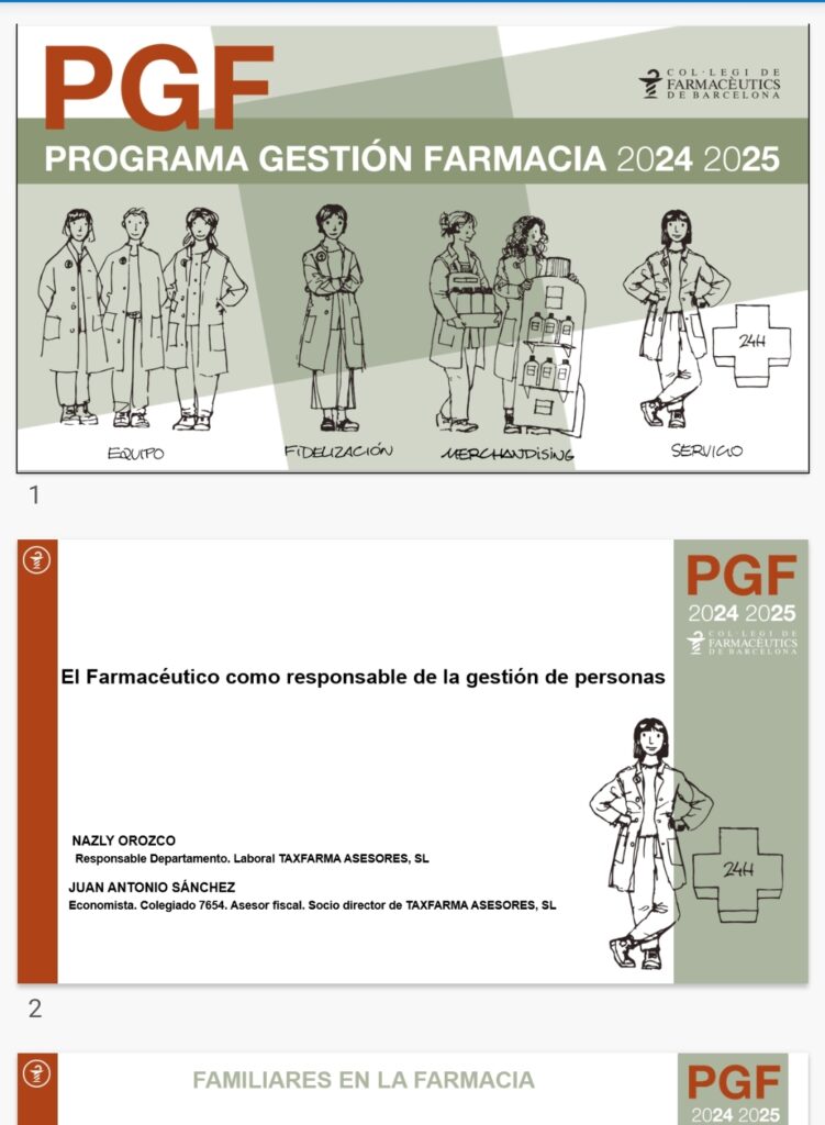 «Familiares en la farmacia» XVIII Programa Gestión Farmacia 2024-25. Colegio de Farmacéuticos de Barcelona