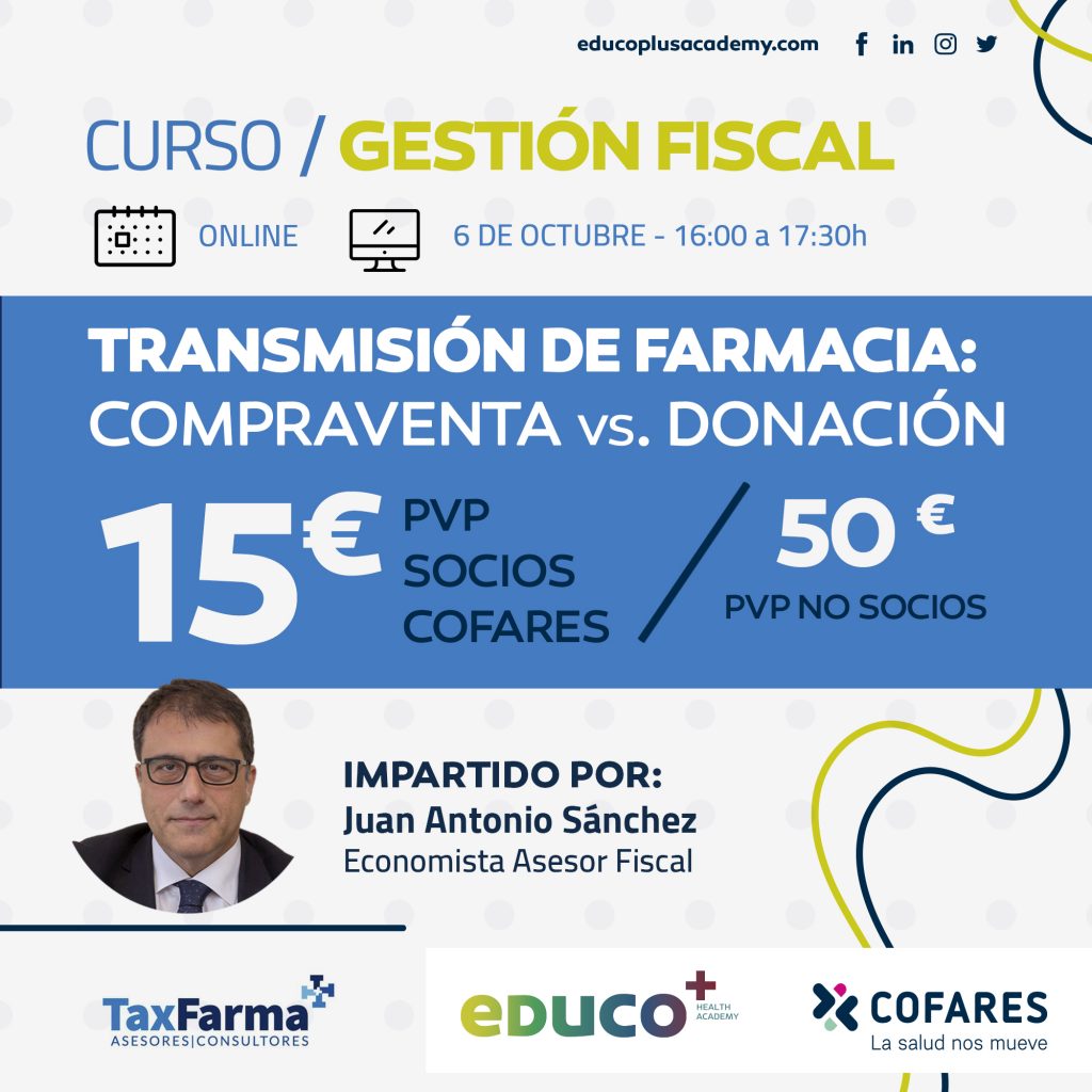 La transmisión de la Oficina de Farmacia conlleva uno de los momentos fiscales más importantes para el farmacéutico. Tanto en su vertiente de compraventa, como en la donación o sucesión, resulta imprescindible la planificación del impacto fiscal de estas situaciones. En este Curso online (6 octubre 2020, de 16 a 17:30h), organizado por EDUCO+ y […]