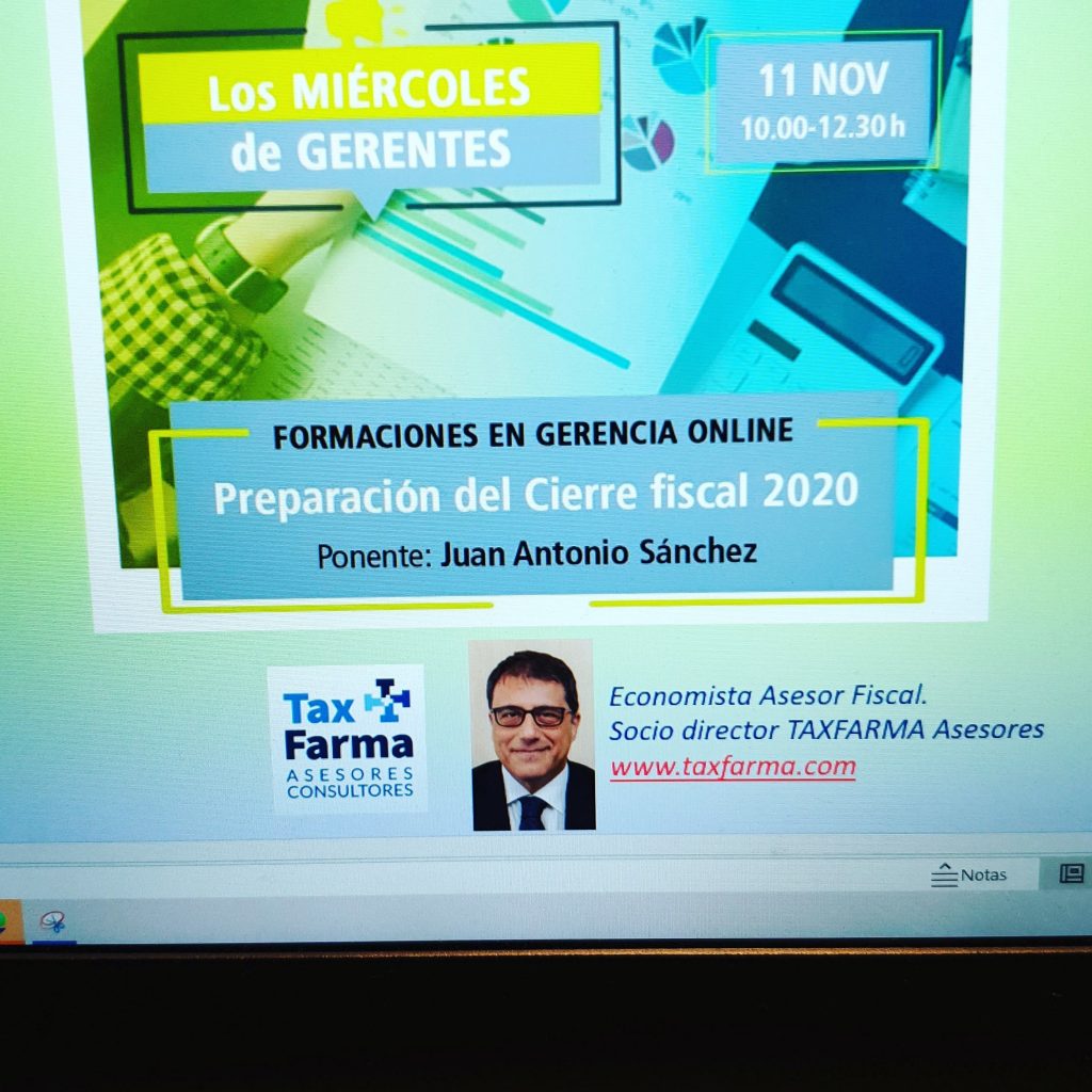 Ayer 11/11/2020 a las 10:00h impartimos «Preparación del cierre fiscal 2020» #Farmacia #Taxfarma #MiércolesdeGerentes Formación online organizada por @Mediformplus . Excelente participación de los asistentes