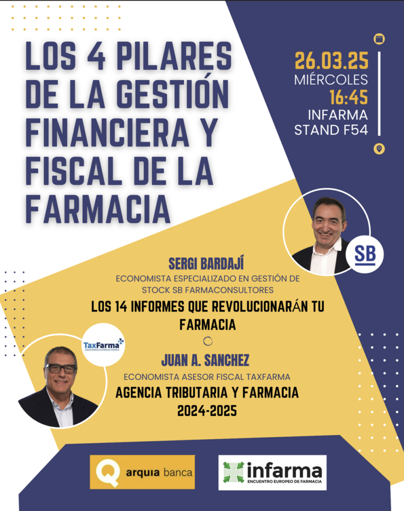 El próximo 26 de marzo de 2025 a las 17.00 en INFARMA , tendrá lugar esta formación por parte de Sergi Bardaji de SB Farmaconsultores y Juan Antonio Sanchez de Taxfarma