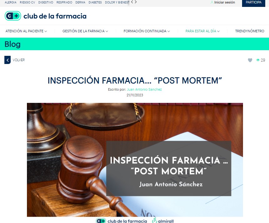 Nuestra colaboración de noviembre 2.023 en el Blog del Club de la Farmacia Almirall Juan Antonio Sanchez, economista socio director de Taxfarma, analiza en este articulo las contingencias fiscales derivadas de la transmisión de la farmacia. Acceso integro link debajo https://shorturl.at/oswGM