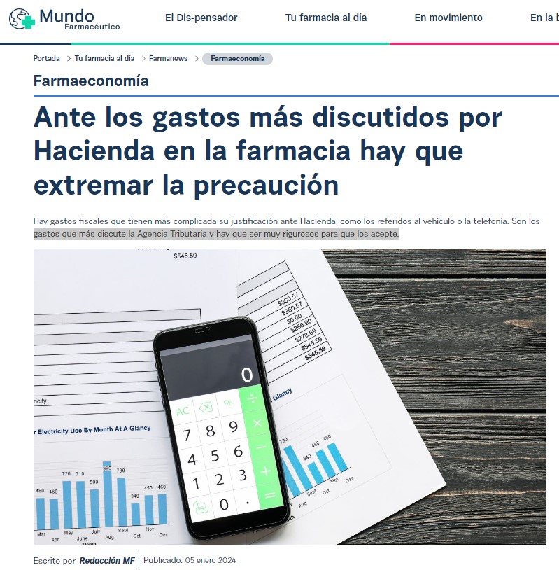 Nuestra opinión en Mundo Farmacéutico. Juan Antonio Sanchez, economista socio director de Taxfarma, opina en este articulo de MUNDO FARMACEUTICO-COFARES , sobre este asunto relacionado con los últimos requerimientos recibidos por las farmacias. Acceso integro link debajo https://www.mundofarmaceutico.es/-/tu-farmacia-al-dia/farmanews/farmaeconomia/gastos-discutidos-por-hacienda