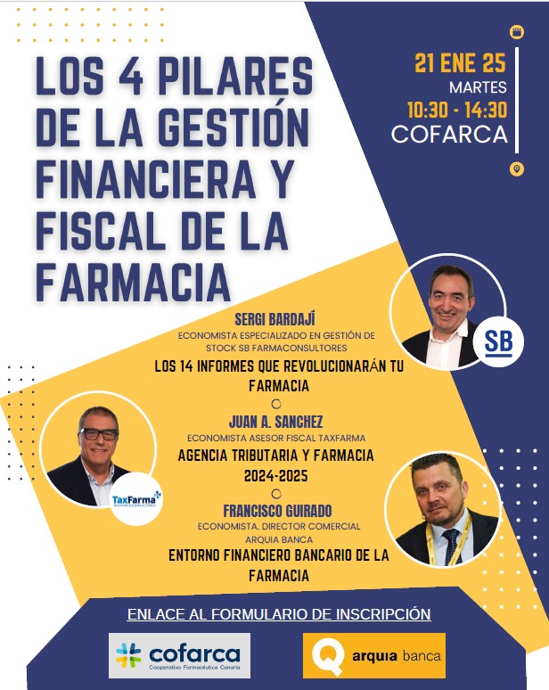 El próximo 21 de enero 2025, en COFARCA – Cooperativa Farmacéutica Canaria – se celebrara esta jornada patrocinada por Arquia Banca